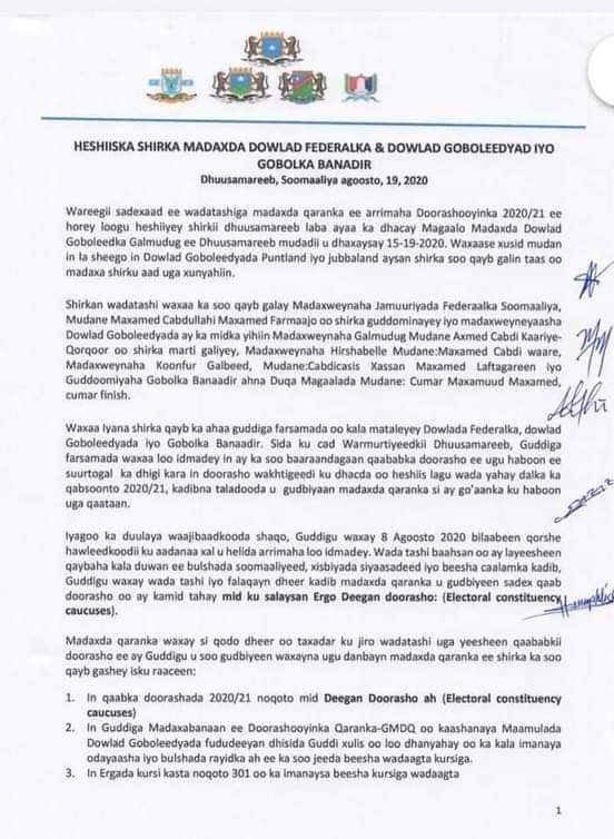 Waxaa ku xusan war-murtiyeedka, in lagu heshiiyay in doorashada dalka ay noqoto mid deegaan doorasho, Dowlad Goboleed kastana laga hirgeliyo ugu yaraan afar deegaan doorasho, oo doorashada ay tahay inay ka dhacdo.