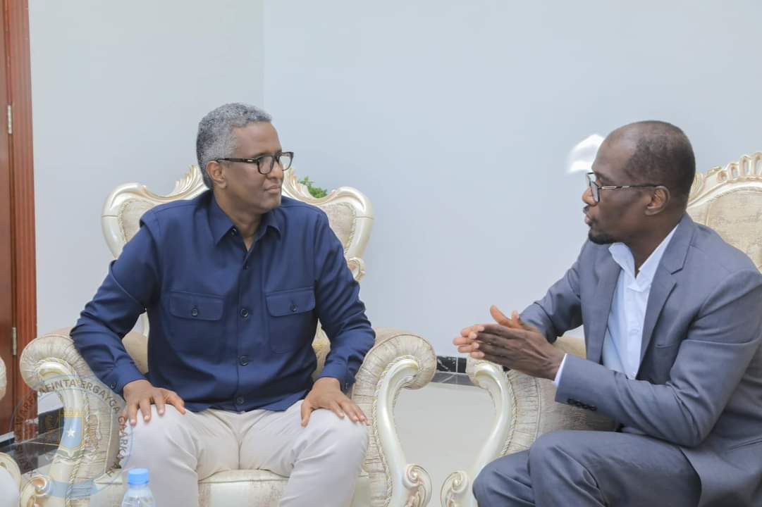 Muqdisho (Halqaran.com) – Ergeyga gaarka ah ee Madaxweynaha Jamhuuriyadda Federaalka Soomaaliya u qaabilsan arrimaha Gurmadka Abaaraha Mudane Cabdiraxmaan Cabdishakuur Warsame, ayaa kulan la yeeshay Safiirka Dowladda Boqortooyada Sacuudi Carabiya u fadhiya Soomaaliya Amb. Axmed Bin Muxamed Saalix Almuwalad.