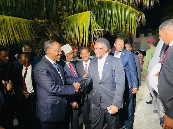 Guddoomiyaha Golaha Aqalka Sare Cabdi Xaashi Cabdillaahi oo ay wehlinayeen Wasiirkii hore ee Wasaaradda Warfaafinta Maxamed Cabdi Xayir Maareeye iyo Xubno kale ayaa maanta ka qeyb galay shirka Midowga Musharraxiinta Madaxweynaha.