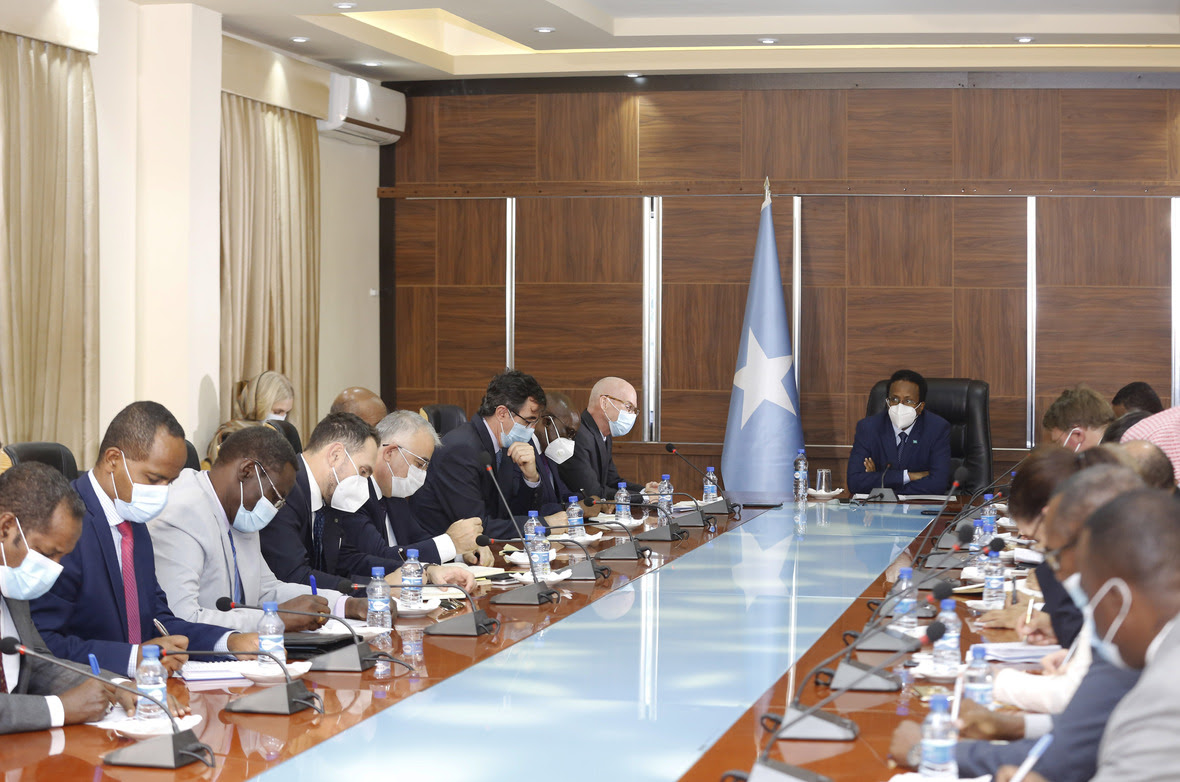 Muqdisho (Halqaran.com) – Madaxweynaha JF Soomaaliya Mudane Maxamed Cabdullaahi Farmaajo oo Madaxtooyada Qaranka ku qaabilay Danjireyaasha iyo Wakiillada Beesha Caalamka ee fadhigoodu yahay Muqdisho ayaa la wadaagay sida ay uga go’an tahay dowladda qabsoomidda doorasho daahfuran, iyada oo la raacayo Heshiiskii 17-kii sibteembar 2020 ee ay ansixiyeen Baarlamaanka Federaalka Soomaaliya.