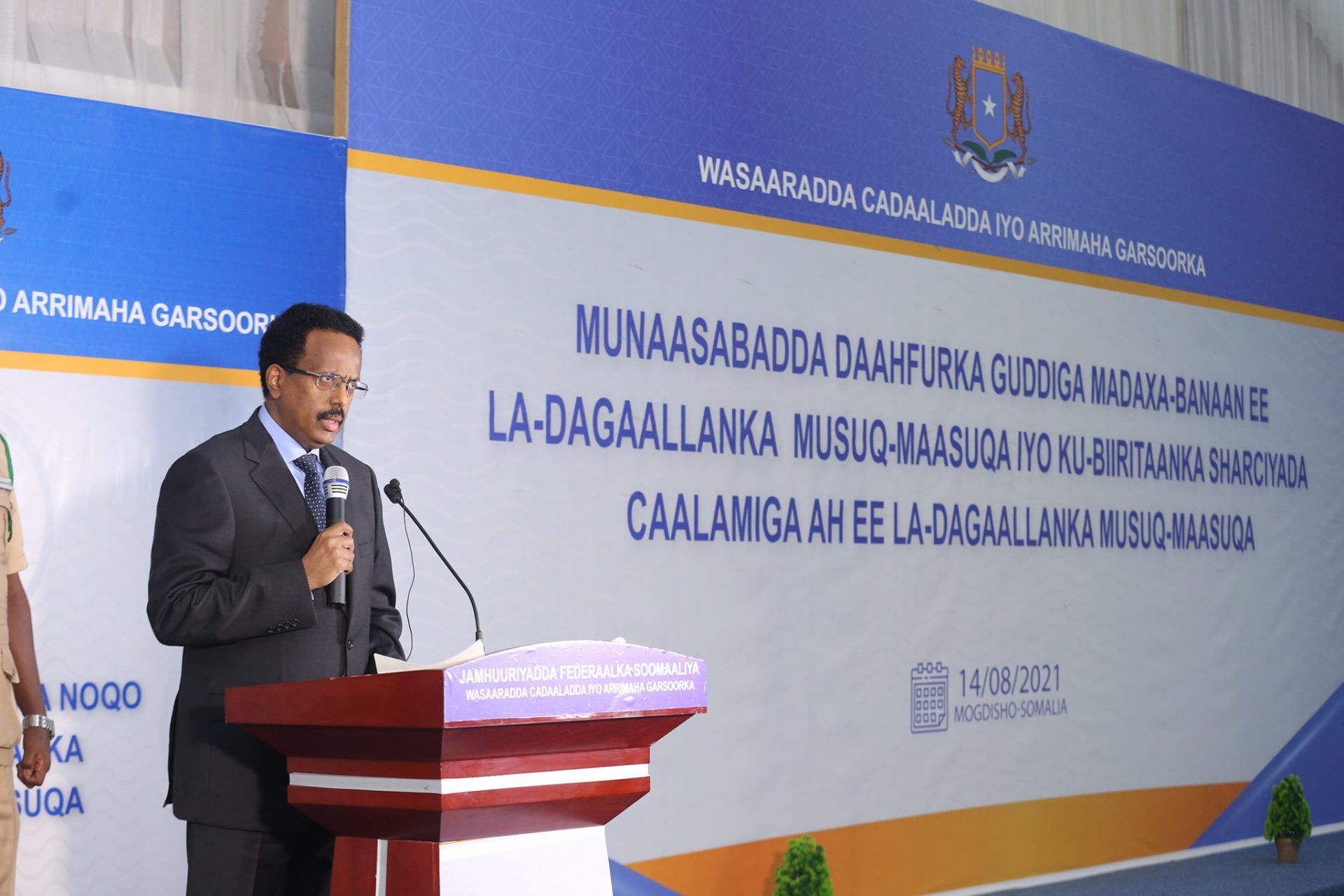 Madaxweynaha Jamhuuriyadda oo kula dardaarmay Guddiga Madaxa Bannaan ee La Dagaallanka Musuq-maasuqa in ay waajibaadkooda u gutaan si ay ku dheehan tahay waddaniyad iyo hufnaan, ayaa sidoo kale xeeriyey in 14-ka Ogoosto loo aqoonsado Maalinta Qaran ee La Dagaallanka Musuq-maasuqa ee Jamhuuriyadda Federaalka Soomaaliya.