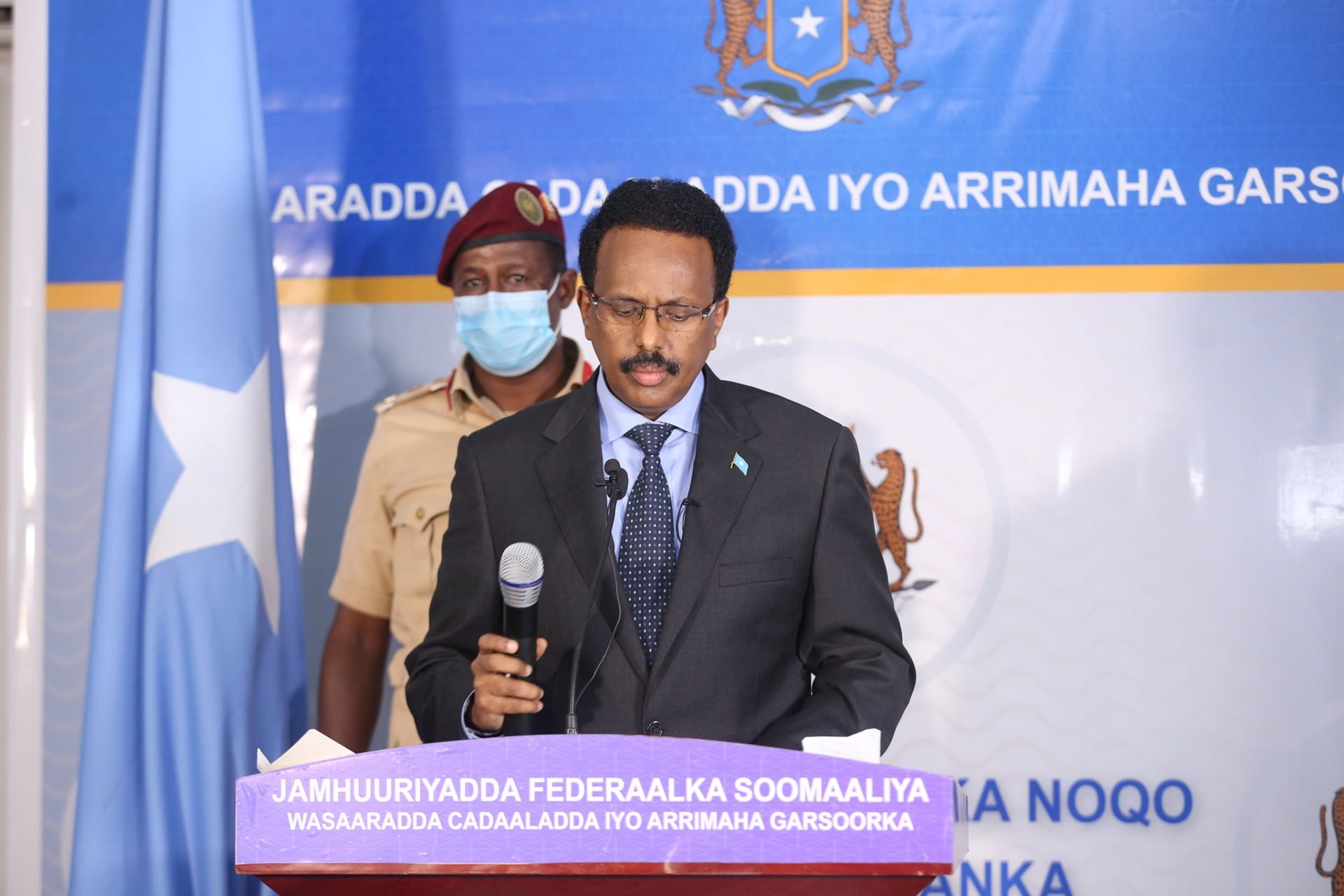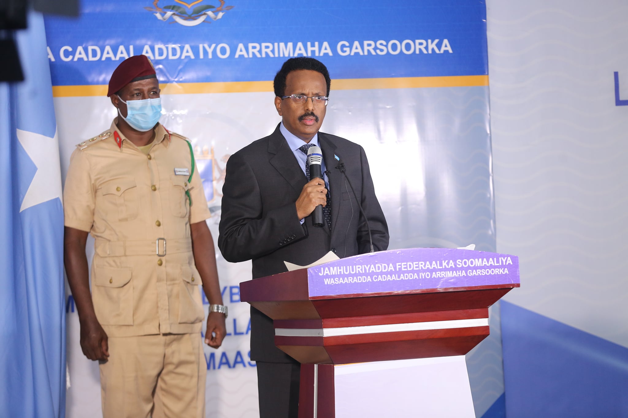 “Dowladda Federaalka Soomaaliya oo ka duuleysa qorsheyaasha Qaran ee ku salaysan dhowridda xuquuqda muwaaddiniinta iyo ilaalinta hantida Qaranku waxa ay ku guuleysatay in aynu si rasmi ah uga mid noqonno maanta Sharciyada Caalammiga ah ee La Dagaallanka Musuq-maasuqa.”