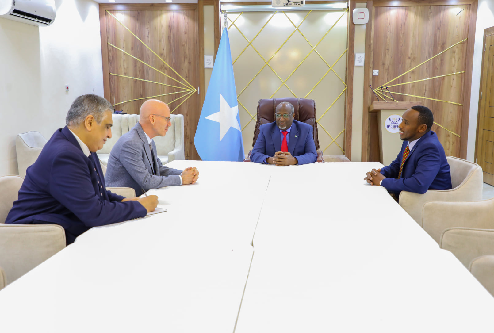 Muqdisho (Halqaran.com) – Guddoomiyaha Golaha Shacabka ee BF Soomaaliya, Mudane Sheekh Aadan Maxamed Nuur (Aadan Madoobe) ayaa Sabtida maanta ah hoygiisa Muqdisho kulan kula qaatay Wakiilka Xoghayaha Guud ee Qaramada Midoobay Mr. James Swan.