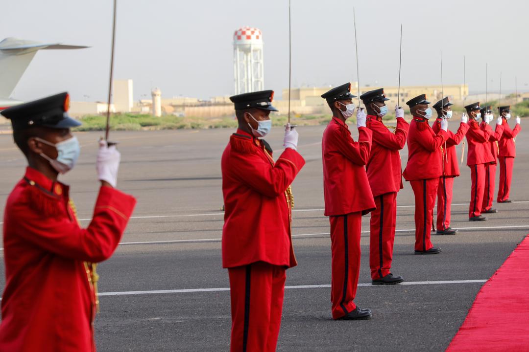 Mr. Rooble ayaa waxaa Garoonka Diyaaradaha ee Ambouli ku soo dhaweeyay dhigiisa dalkaasi, Cabdiqaadir Kaamil Maxamed.