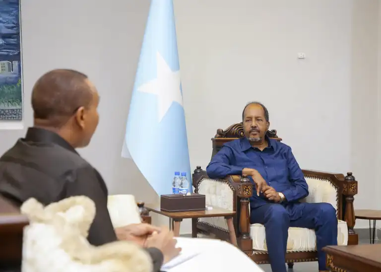 Muqdisho (Halqaran.com) – Ra’iisul Wasaaraha XF Soomaaliya, Mudane Xamse Cabdi Barre ayaa Arbacadii maanta la kulmay Madaxweynaha JF Soomaaliya, Mudane Xasan Sheekh Maxamuud oo ka soo laabtay socdaal rasmi ah oo uu ku tagay dalka Masar.
