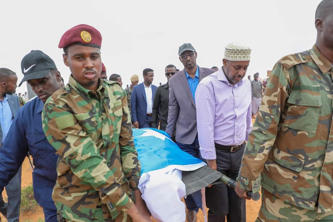 Saraakiishii lagu xasuuqay qaraxii Gaalkacyo oo la aasay +(SAWIRRO)