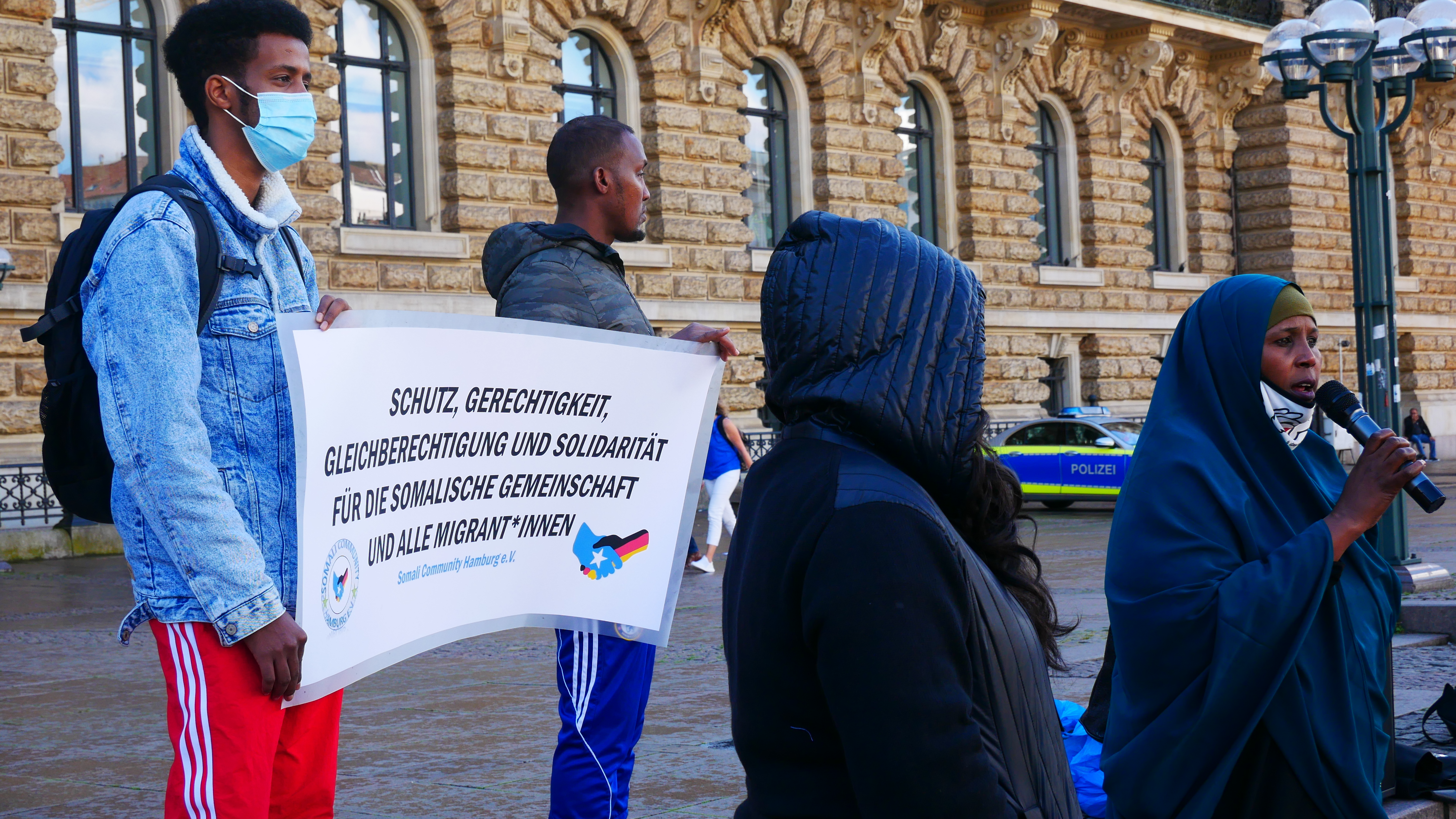 Ugu dambeyn, guddoomiyaha Jaaliyadda Soomaalida Hamburg, Axmed Nuur Ibrahim (Soomaali) oo gabagabadii ka hadlay mudaaharaadka ayaa sheegay in ay ka sugayaan dowladda Jarmalka in xal loo helo dhibaatooyinka ay ka cabanayaan Soomaalida dalkan ku nool.